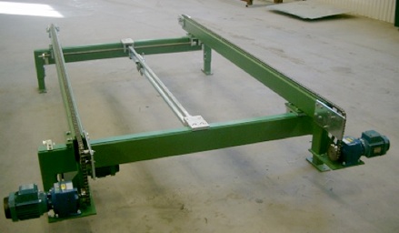 1 szt. Transporter łańcuchowy napędzany silnikiem elektrycznym, szerokość sterowana elektrycznie.