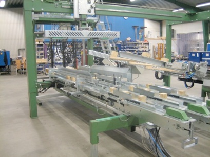 Po ułożeniu gotowych spodów i dekli Maszyna SMS-1000 montuje palety.